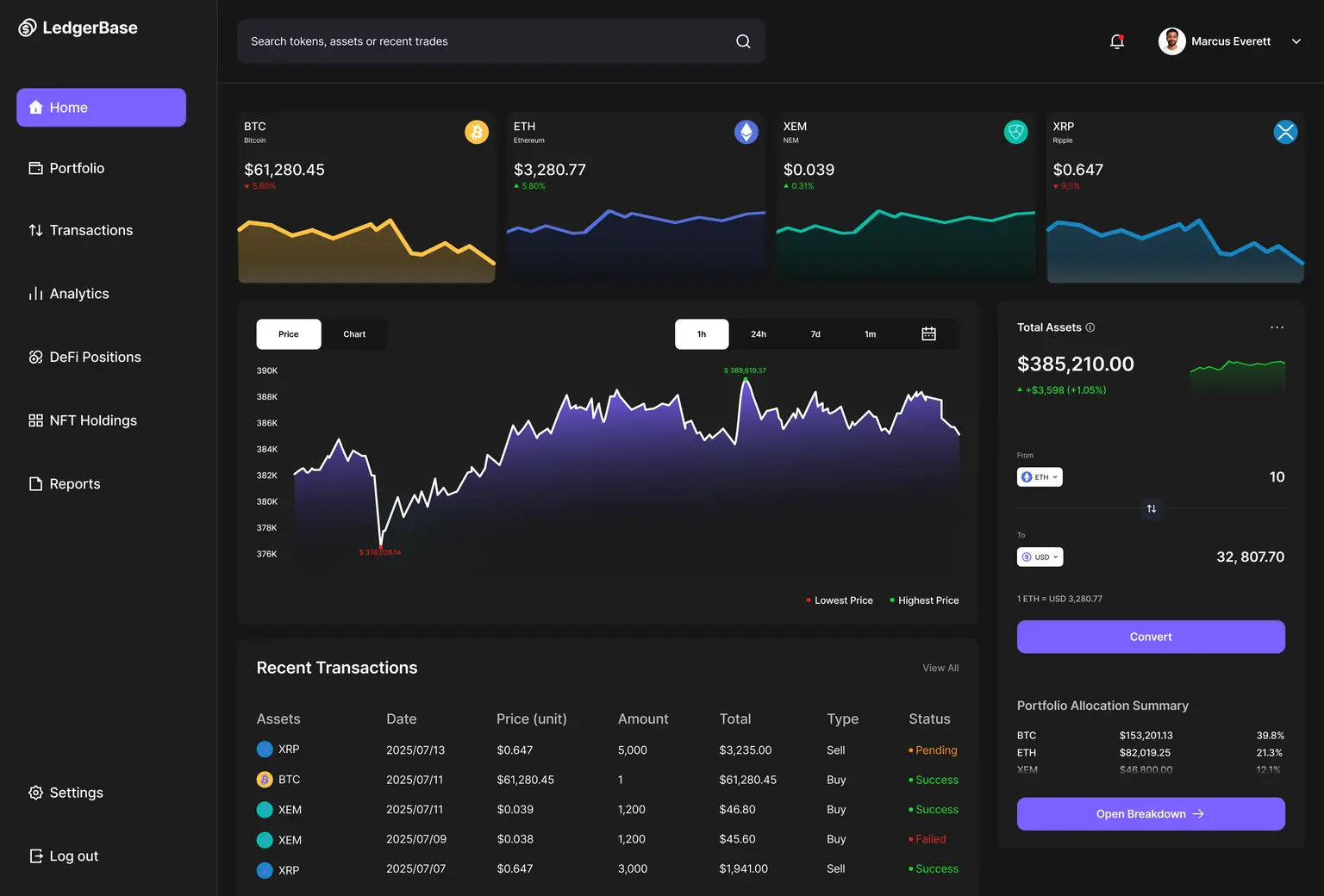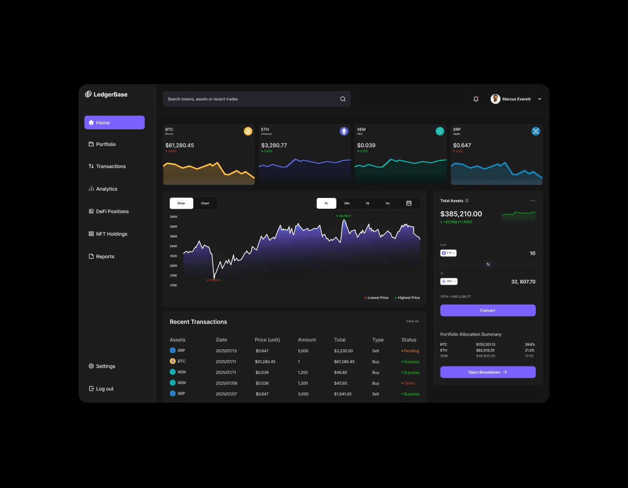 Whether you’re actively trading or overseeing millions in crypto assets, LedgerBase gives you the clarity and structure you need — without the clutter or noise.